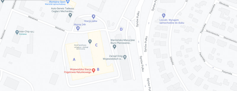 Wojewódzka Stacja Pogotowia Ratunkowego w Olsztynie zlokalizowana jest w budynkach przy ulicy Pstrowskiego 28B: